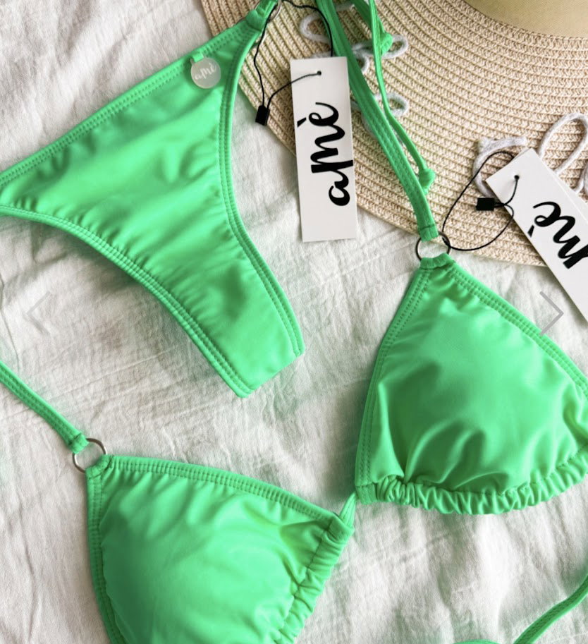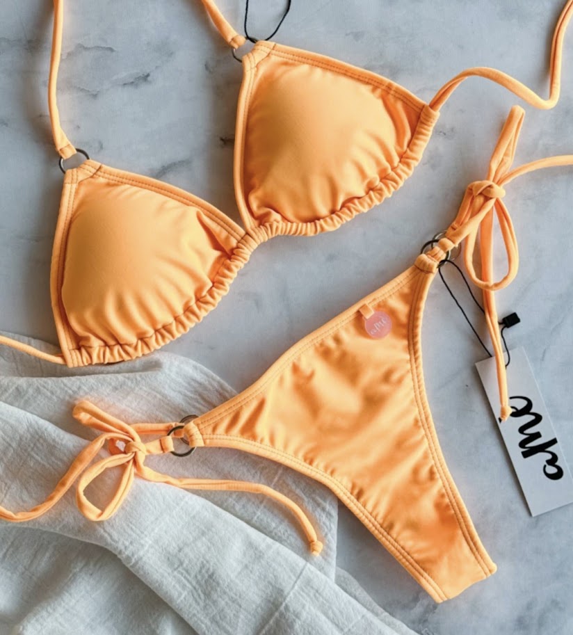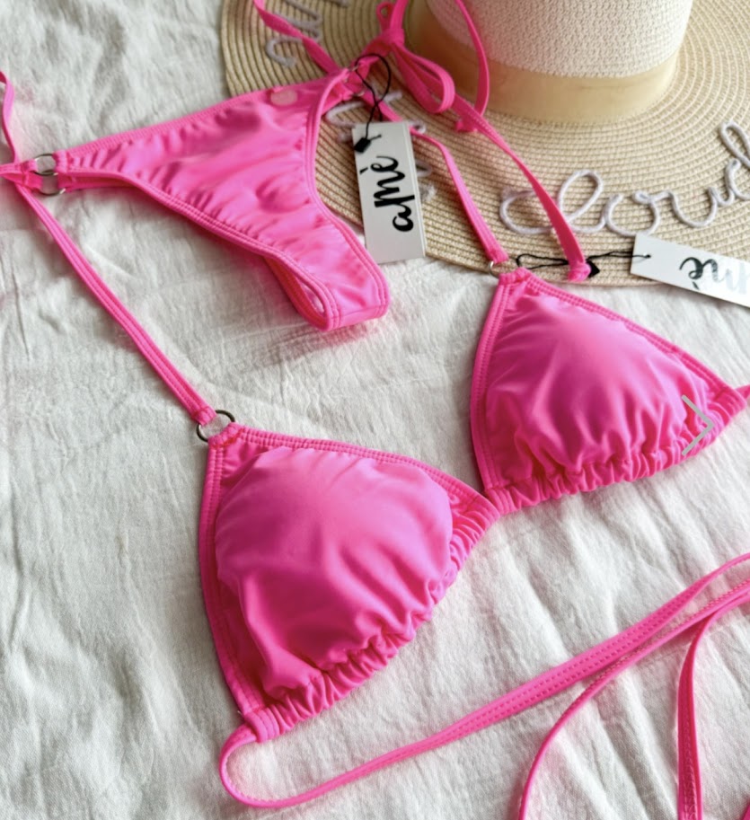 Corpiño triangulito con rellenitos desmontables con detalle de argollitas para atar.